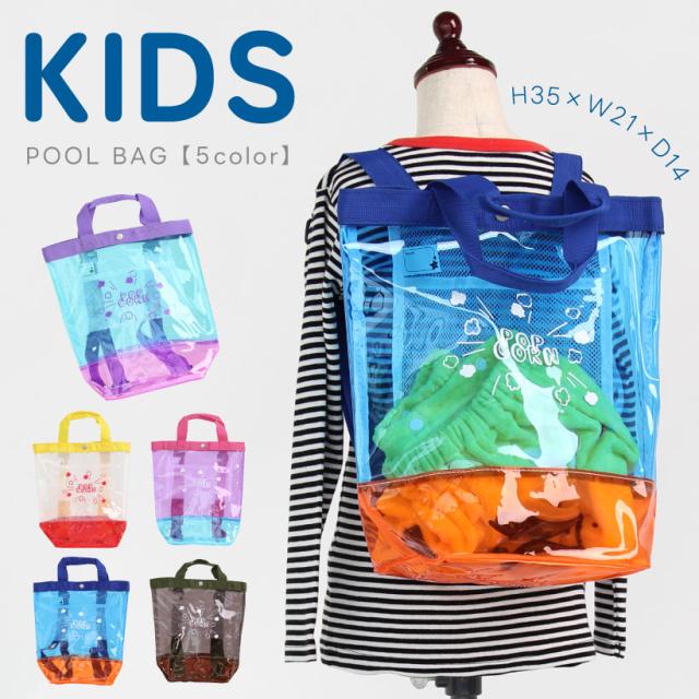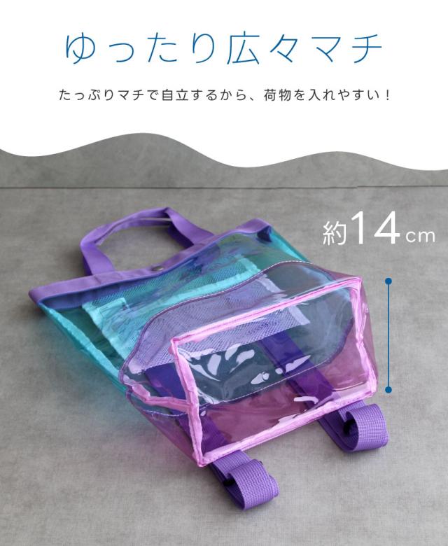 【メール便1枚のみ送料無料】キッズクリア配色2WAYリュック プールバッグ リュック ビニールバッグ ビーチバッグ キッズ 男の子 女の子 おしゃれ かわいい【N】【M】