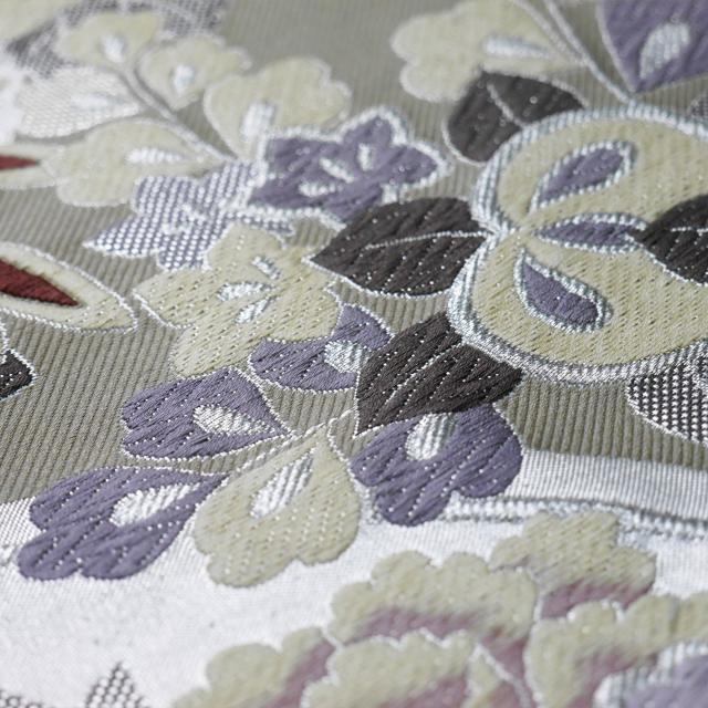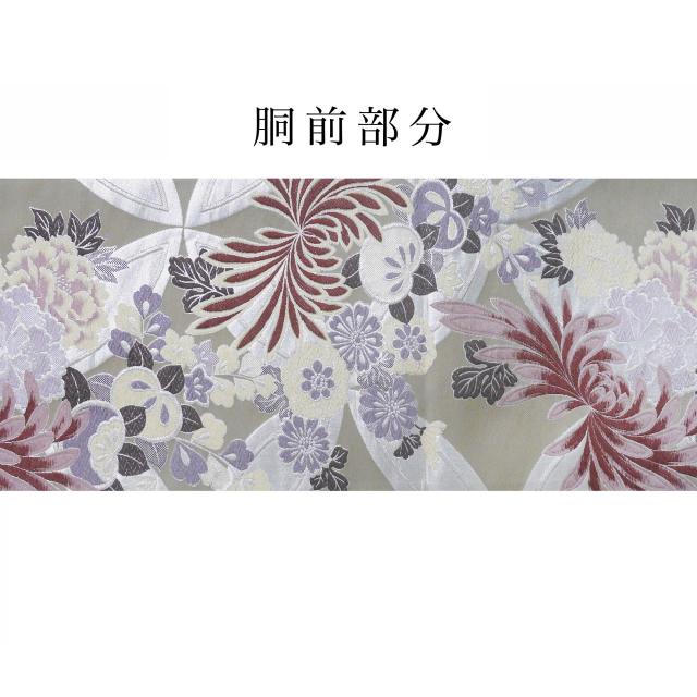 西陣 帯 袋帯【花柄 ベージュ シルバー 七宝 牡丹 橘 菊】 西陣織 お仕立て上がり シルク 振袖帯 結婚式 成人式 振袖用 訪問着用 正装 和装 フォーマル