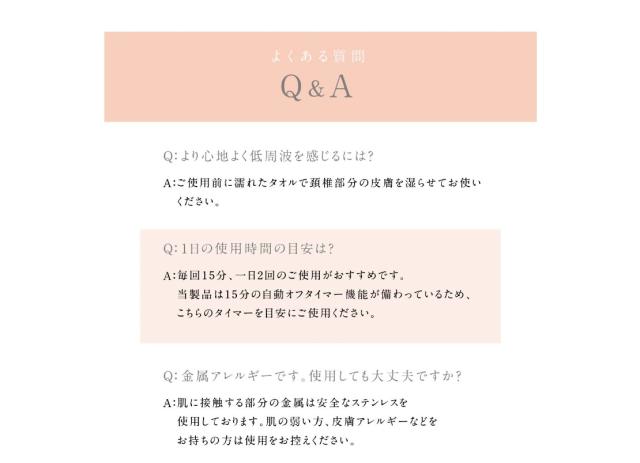 独自の低周波パルスが首の奥まで刺激し、温熱効果があなたをリラックスと導きます。