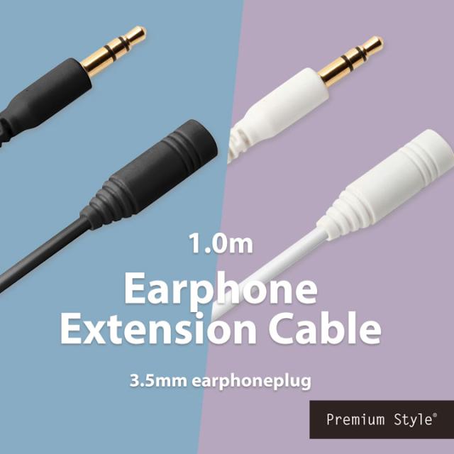 3.5mmステレオミニプラグ 延長ケーブル スタンダード PVC 1m ブラック ホワイト 信号劣化防止 金メッキ端子 メール便送料無料