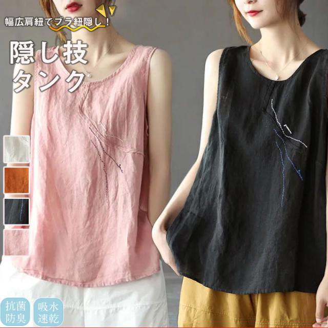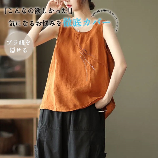 ポイント超超祭 タンクトップ チラ見え防止 レディース リネン ブラ紐隠し 無地 Vネック タンク インナー カットソー 重ね着 キャミソール トップス ゆったり