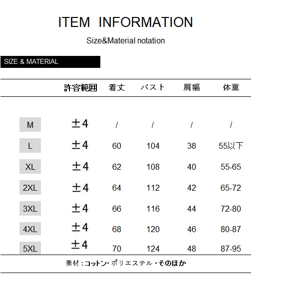 サイズ:/L/XL/2XL/3XL/4XL/5XL