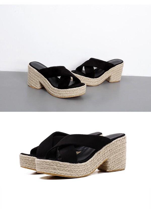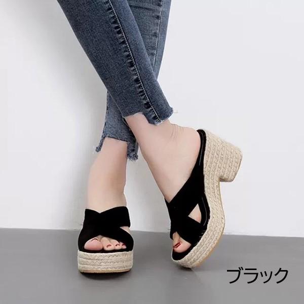 厚底サンダル レディース つっかけ 前開き 美脚 太め クロスベルト かかとなし ミュールサンダル ウェッジソール サボサンダル エスパドリーユ ジュート ナチュラル きれいめ おしゃれ 黒 ブラック ベージュ di158x1x1zr