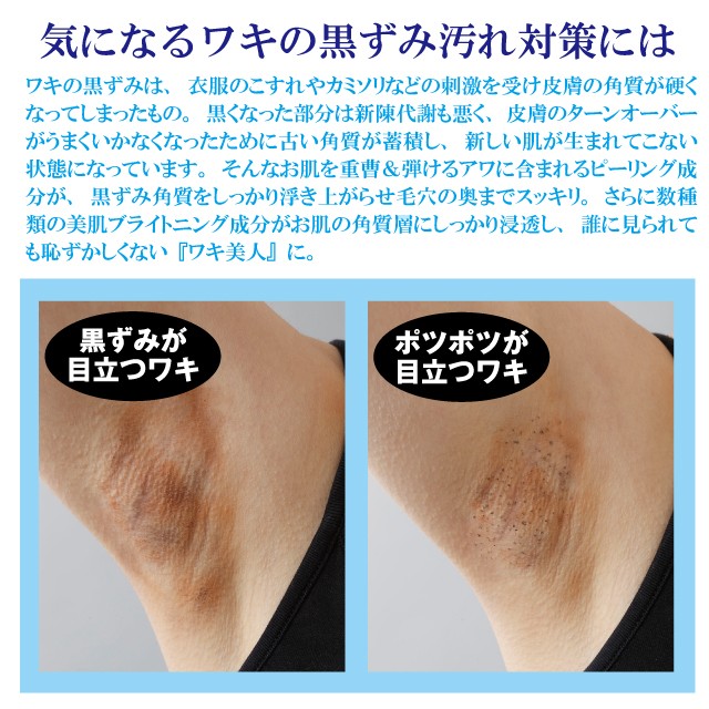 古い角質や毛穴の汚れが蓄積し、黒ずんでしまったワキに。 重曹&弾ける泡に含まれる