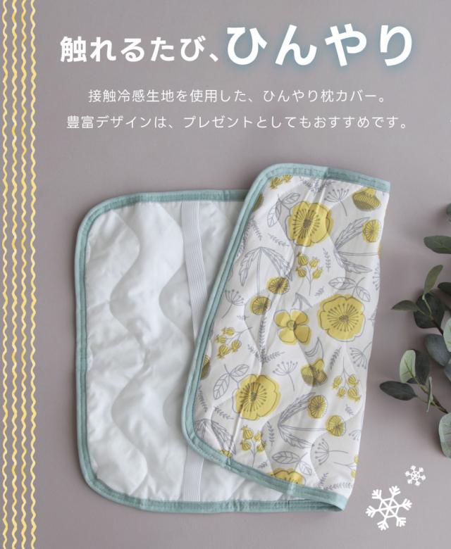 【メール便1枚のみ送料無料】ひんやり枕カバー【約45×65cm】フラワー ビール 接触冷感 ピローパッド 夏 柴犬 プレゼント ギフト【N】【M】