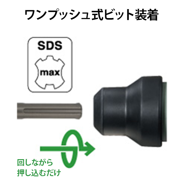 ビットの装着動作を従来の2アクションから1アクションに改善することで、回しながら押し込むだけでビットを簡単に装着できるようになりました。