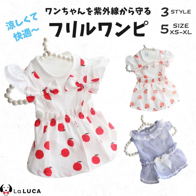 犬 服 犬服 ドッグウェア フリル ワンピース Tシャツ 紫外線防止 タンクトップ タンク ストライプ フルーツ イチゴ マリン クール 抜け毛防止 虫刺され防止 部屋着 夏服 春服 秋服 オールシーズン 犬の服 LaLUCA 送料無料
