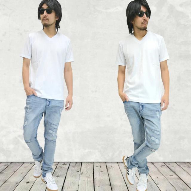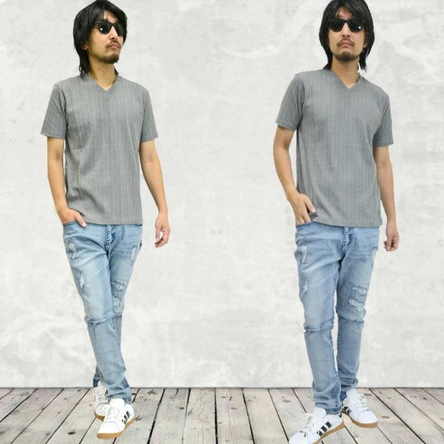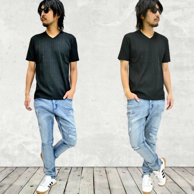 【閉店セール】新作 Vネック 半袖Tシャツ 無地 インナー ランダムテレコ 30422 夏 Tシャツ メンズ Vネック 半袖 メンズファッション キレイメ シンプル メール便対応商品 メンズカジュアル Vネック メンズ ストレッチ クール M L LL