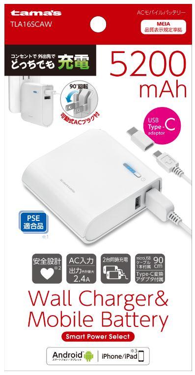 多摩電子 TLA16SCAW ACモバイルバッテリー 5200 USB TypeC変換[TLA16SCAW] 返品種別A