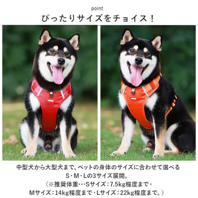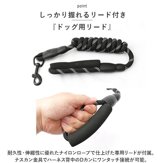 | 商品説明 | ・お散歩が大好きなワンちゃんに!大型のワンちゃんでも安心、タフな「ドッグ用ハーネス&リードセット」が新登場。 『ドッグ用ハーネス』 【裏面メッシュで快適】 ・身体に当たるハーネス内側の生地には、通気性のよいメッシュ素材を採用。汗ばむ季節やいっぱい歩くワンちゃんでもサラサラと快適。 【バックルベルトでラクラク着脱】 ・広げたハーネスをワンちゃんの頭からすっぽりと被せ、2本のバックルベルトでお腹周りをしっかりホールドするスタイルで、着脱が楽ちん。 【4つのアジャスターで簡単調節】 ・リードで引っ張られる力を、両肩とお腹周りの4本のベルトで受け止める立体構造。4本のベルトには、それぞれサイズの微調整ができるアジャスター付き。 【柔らかな補助ハンドル】 ・交差点での信号待ちや、車道でのワンちゃんの急な走り出しを防ぐ「飛び出し防止補助ハンドル」付き。シニアのワンちゃんの歩行アシストにも大活躍。 【Dカンには迷子札を装着可能】 ・ハーネスのチェスト部分には、IDタグや迷子札、LEDライトを取り付けるのに便利なDカン付き。 『ドッグ用リード』 【しっかり握れるリード付き】 ・耐久性・伸縮性に優れたナイロンロープで仕上げた専用リードが付属。ナスカン金具でハーネス背中のDカンにワンタッチ接続が可能。 【手に優しいスポンジハンドル】 ・リードのハンドル部分はソフトなスポンジ素材でカバー。ワンちゃんがリードを強くひっぱっても手が痛くなりにくい優しい造り。 【ねじれを防いでお散歩スムーズ】 ・ナスカン金具とリードのジョイント部分が360度回転するので、お散歩中のリードのねじれも気にならない♪ 【キラリと光って夜でも安心】 ・ハーネスにはリフレクター素材のライン、リードにはリフレクターのステッチを編み込み、自動車のライトをキラリと反射して、夜のお散歩でも安心。 【ぴったりサイズをチョイス!】 ・中型犬から大型犬まで、ペットの身体のサイズに合わせて選べるS・M・Lの3サイズ展開。(※推奨体重・・・Sサイズ:7.5kg程度まで・Mサイズ:14kg程度まで・Lサイズ:22kg程度まで。) |