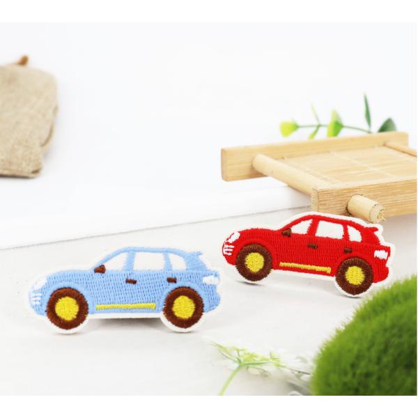 ブルー 青い 車 と レッド 赤 車 クルマ 刺繍 ワッペン 2枚セット かわいい カッコイイ デコレーション&リメイク 幼稚園 保育園