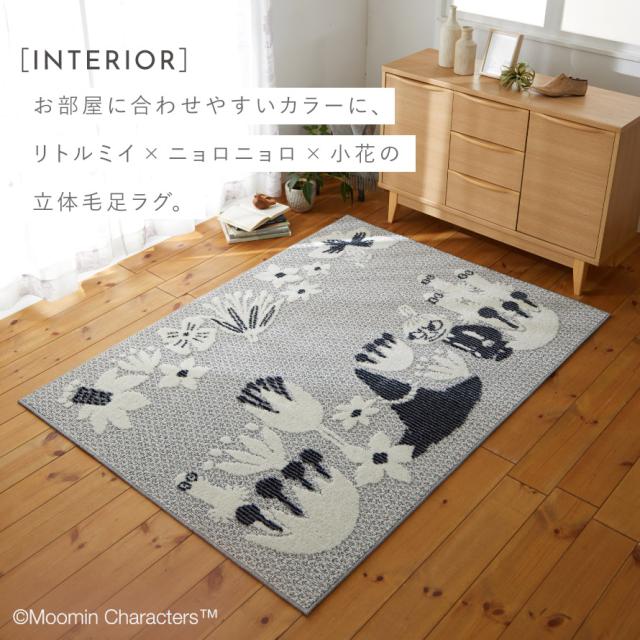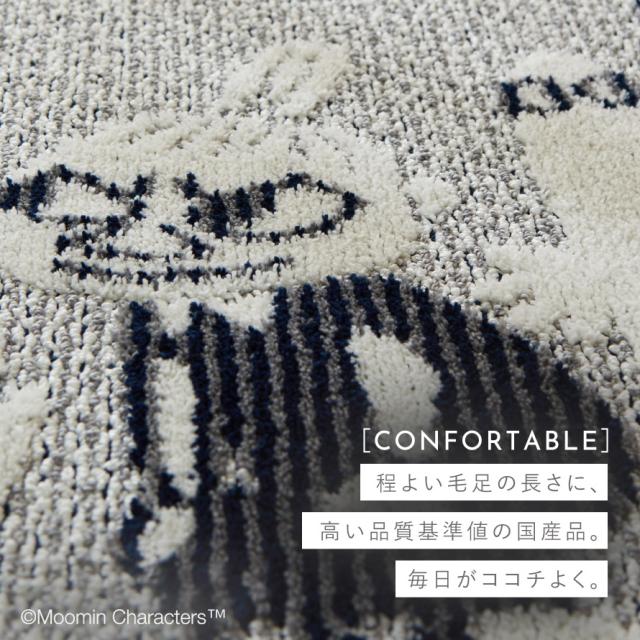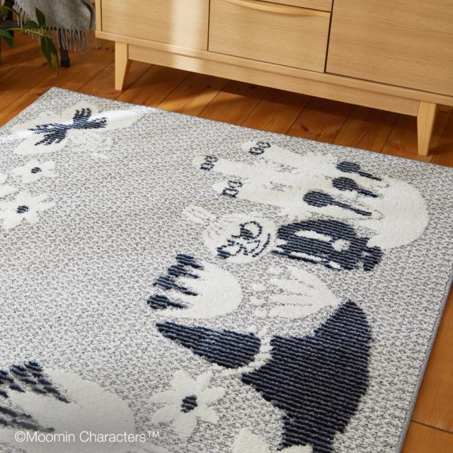 ムーミン,ラグ,北欧,リトルミイ,ミイ,スナフキン,ニョロニョロ,MOOMIN,トーベヤンソン,インテリア,おしゃれ,カーペット,130×185cm,長方形,フロアマット,ラグマット,インテリアマット,防ダニ,床暖房,床暖房対応,ホットカーペット,ホットカーペット対応,シックハウス対応,遊び毛防止,オールシーズン,スミノエ,SUMINOE,グッズ,雑貨,デザイン,北欧テイスト,北欧柄,シンプル,モダン,ナチュラル,お洒落,オシャレ,かわいい,可愛い,日本製,リビング,子供部屋,寝室,コバナ ラグ,KOBANA RUG,ネイビー,紺,ブルー,青,グレー,