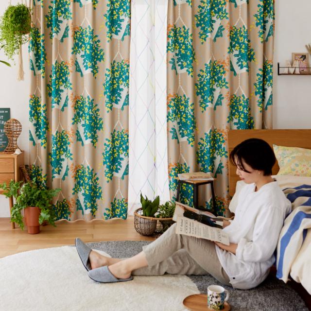 ガーデニングで人気の「ハンギング」がモチーフ。大胆なデザインが楽しいドレープカーテン。