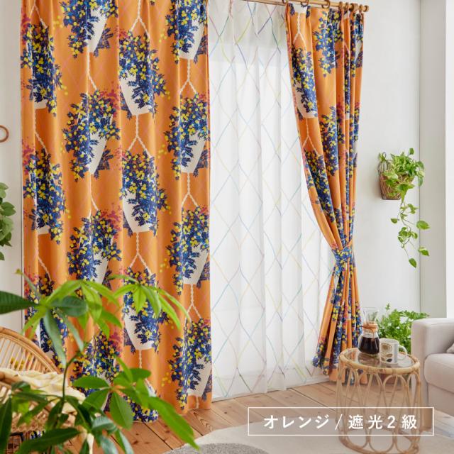 カーテン,北欧,遮光,2級,遮光カーテン,1枚,100×200cm,2級遮光,インテリア,おしゃれ,ドレープカーテン,ドレープ,形状記憶加工,日本製,洗える,ウォッシャブル,洗濯,リビング,子供部屋,寝室,スミノエ,SUMINOE,雑貨,デザインライフ,DESIGN LIFE,花柄,花,フラワー,ボタニカル,植物,北欧テイスト,北欧柄,シンプル,モダン,ナチュラル,お洒落,オシャレ,かわいい,可愛い,ハンギング,HANGING,オレンジ,ベージュ,
