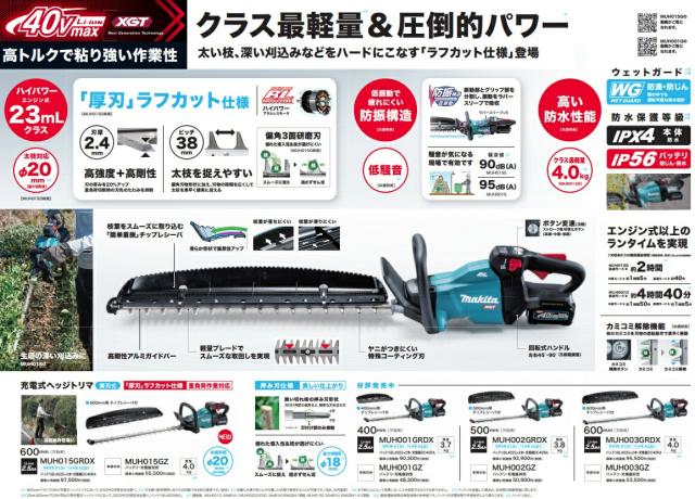 マキタ 充電式ヘッジトリマ 両刃式 MUH015GZ 厚刃ラフカット仕様 本体のみ 40Vmax対応 makita 大型商品 セット品バラシ