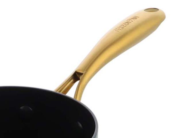 ハンドルには熱くなりにくいPVD加工を表面に施しています。さらに鍋を軽くするために、ステンレス板を丸く曲げて、内部を中空にしたデザインになっています。持った時の軽さは驚きです。特に女性やご年配の方にもおすすめです。