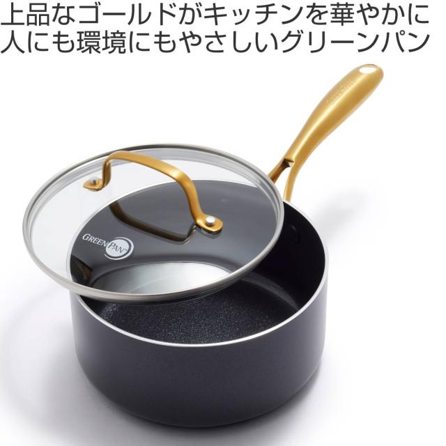 GREEN PAN ソースパン 16cm IH対応 ストゥディオ ガラス蓋付き ( グリーンパン STUDIO ガス火対応 食洗機対応 ミルクパン 片手鍋 小鍋 セラミック加工 16センチ アルミ製 マグニート加工 ノンスティック加工 ガラス蓋 おしゃれ )