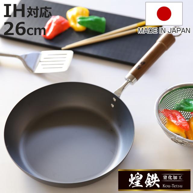 鉄フライパン 26cm 煌鉄 窒化加工 日本製 ( IH対応 ガス火対応 炒め鍋 いため鍋 フライパン 鉄のフライパン 26センチ 鉄製 空焼き不要 油引き不要 鉄製フライパン 鉄製調理器具 )