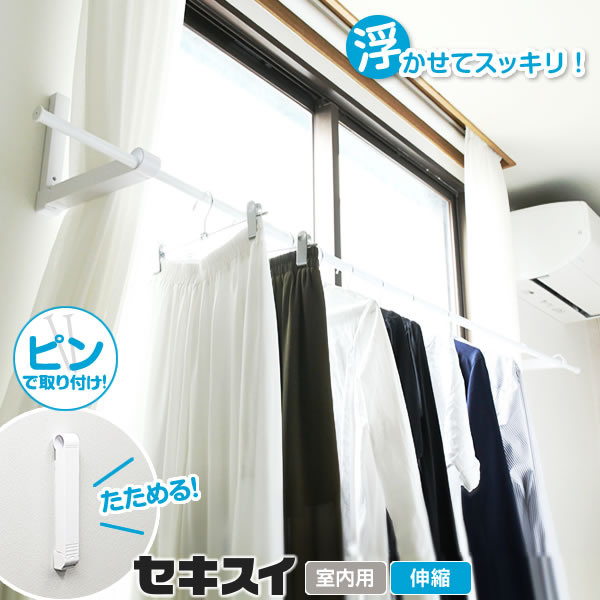 セキスイ 壁面用 取付ものほし 取り付け幅1〜2m ホワイト HTM-2 | 洗濯物干し 室内 窓 物干し 窓際 壁 物干し竿 ポール 部屋干し 白 石膏ボード 石こう 収納できる すっきり 折りたたみ ネジ 釘ピン