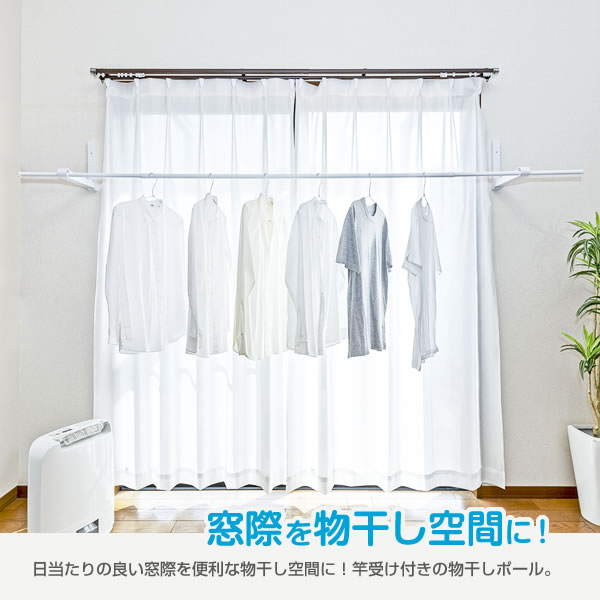 日当たりの良い窓際を便利な物干し空間に!折りたたんでコンパクトに収納できる竿受けと物干し竿のセット。