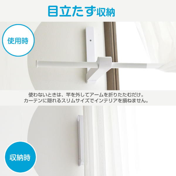 使用しないときは目立たず収納使わない時は竿を取り外し、竿受けのアームを折りたたんでコンパクトに収納できます。