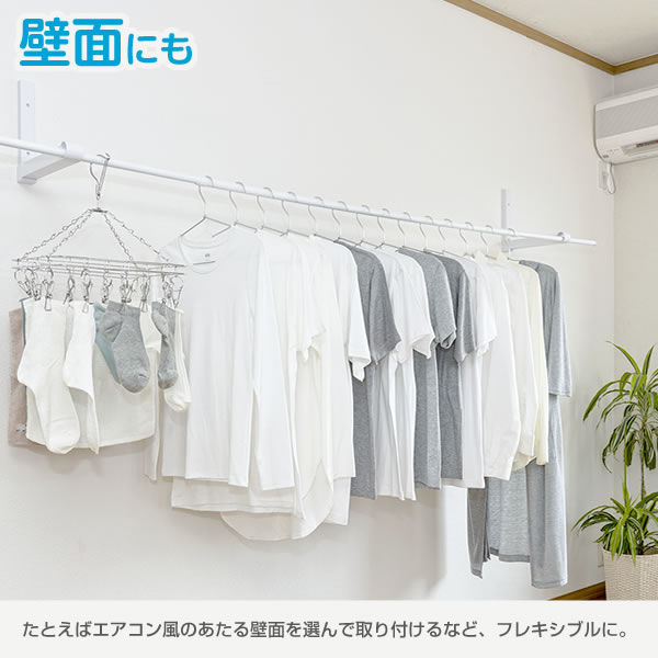 お好みの場所に付けられる!窓際はもちろん、エアコン下の壁や脱衣所でも便利に使えます。