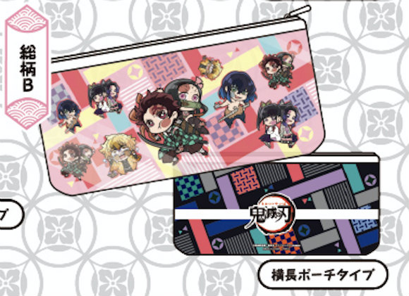 【総柄B (横長ポーチ)】 鬼滅の刃 ぴた!でふぉめビニポ