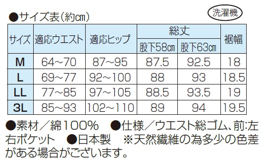 ●股下丈/股下58cm、股下63cm