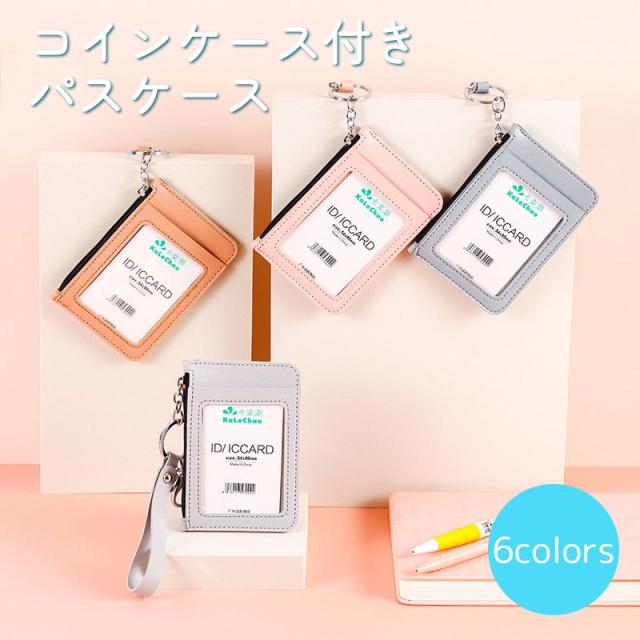 キーリング、カラビナが付いた便利なコインケース付きのパスケースです。
