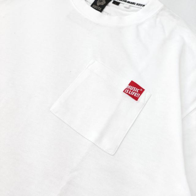 シンプルなデザインのドロップショルダー半袖ポケットTシャツ。