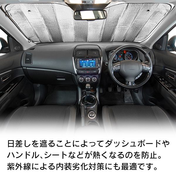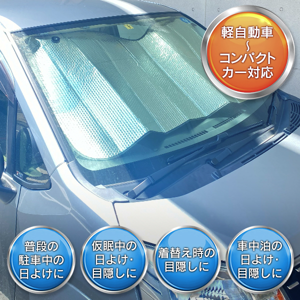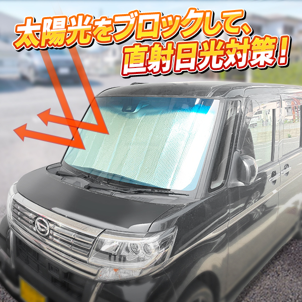 | 付属の吸盤でフロントガラスに貼るだけ! 直射日光をブロック! | ||