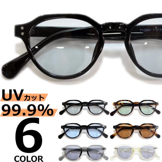 サングラス 伊達メガネ メンズ レディース ボストン ラウンド 丸メガネ クラウンパント ライトカラーレンズ 薄い色 ブラック グレー スモーク デミ グリーン ブルー クリアーフレーム 全6色