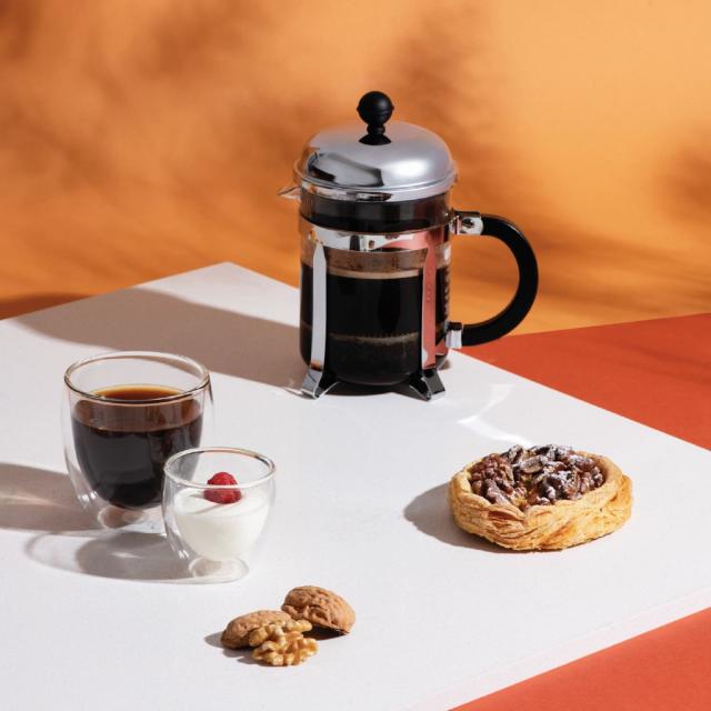 CHAMBORD フレンチプレスコーヒーメーカーで、最高のコーヒーを。フレンチプレスは、シンプルな抽出方法とコーヒー本来のピュアな味わいで、世界中のコーヒー愛好家に愛されています。ボダムのフレンチプレスの原点である最高のコーヒーメーカー、それがCHAMBORDです。