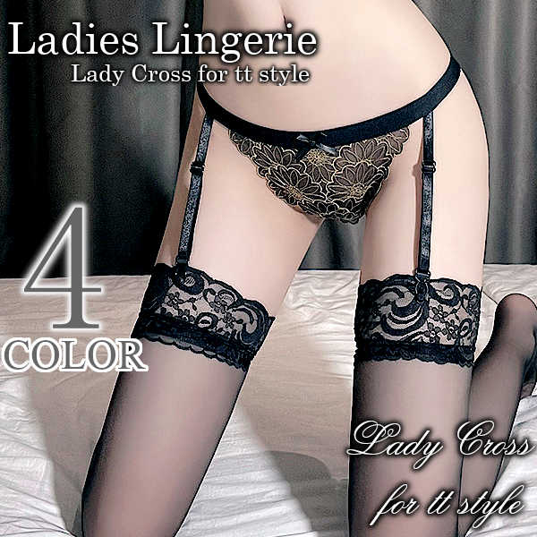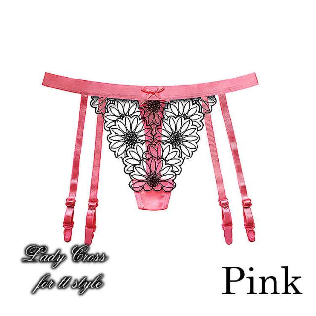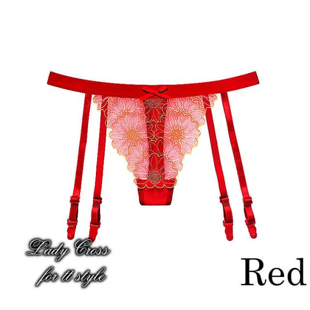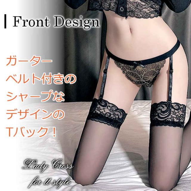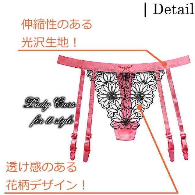 ガーターベルト付きショーツ セクシーランジェリー レディースショーツ Tバック 花柄 下着 シースルー フリーサイズ 過激 ブラック ホワイト 送料無料 ネコポス便
