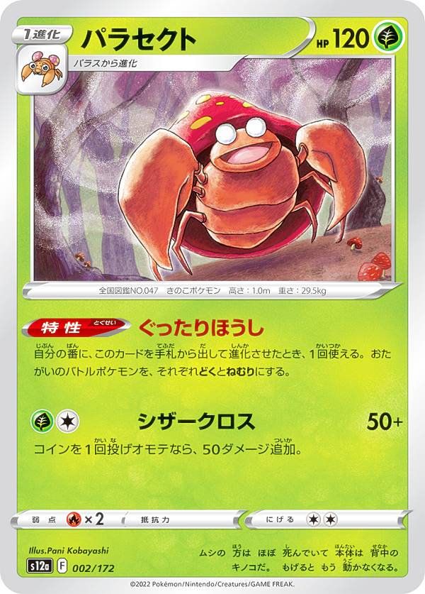 ポケモンカードゲーム S12a 002/172 パラセクト 草 (レアリティ表記無し) ハイクラスパック VSTARユニバース