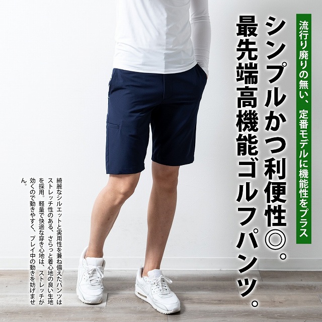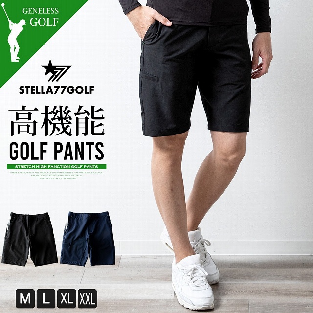 ショートパンツ ゴルフウェア メンズ パンツ ストレッチ サイドライン ハーフパンツ 無地 夏 膝上 短パン ST111004