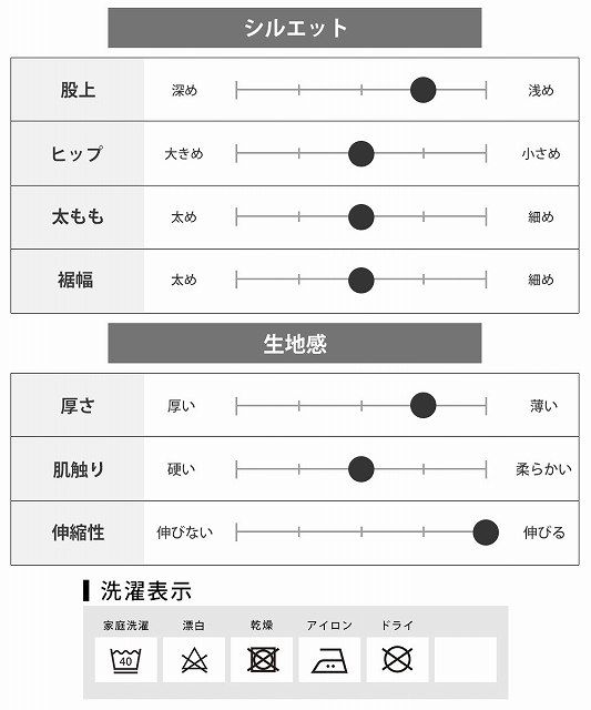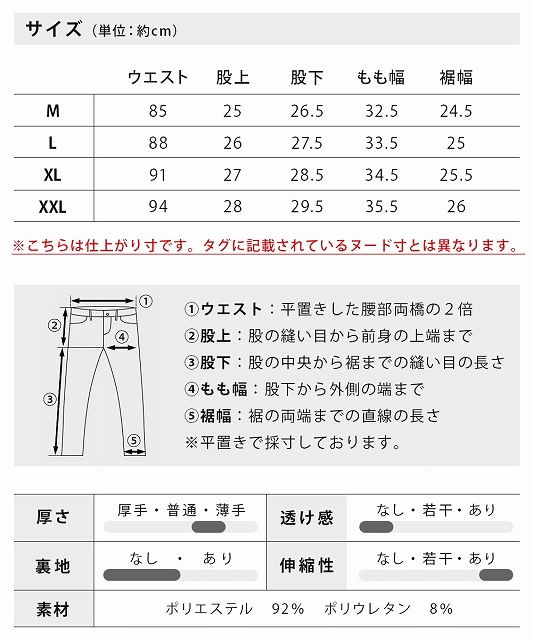 | サイズ | ウエスト | 股上 | 股下 | もも幅 | 裾幅 |