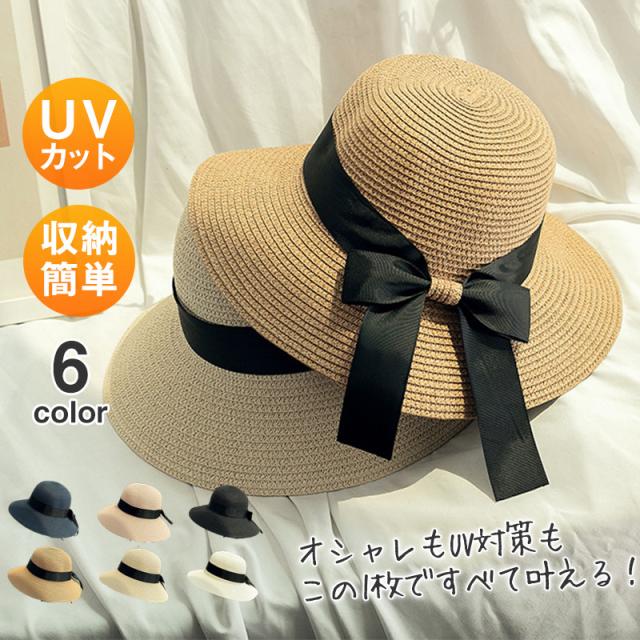 帽子 レディース ハット 日よけ帽子 日焼け防止 つば広 カバー 紫外線対策 UVカット 麦わら帽子 ゴルフ 蝶リボン ハット あ