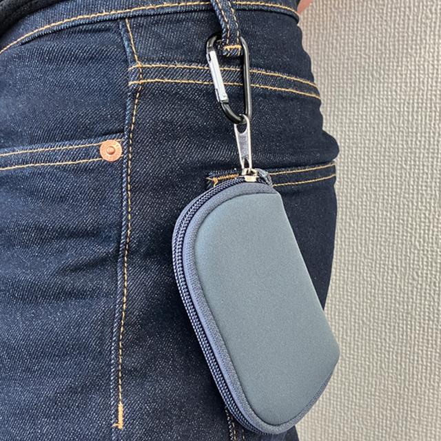 カラビナ付き ミニポーチ 小物入れ おしゃれ メンズ レディース アウトドア キャンプ シンプル イヤホン AirPods 軽量 コンパクト ネオプレン メンズ ベルト 小さめ マルチポーチ 収納 黒 グレー ネイビー