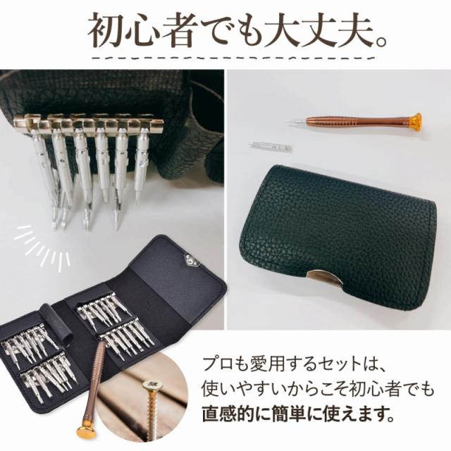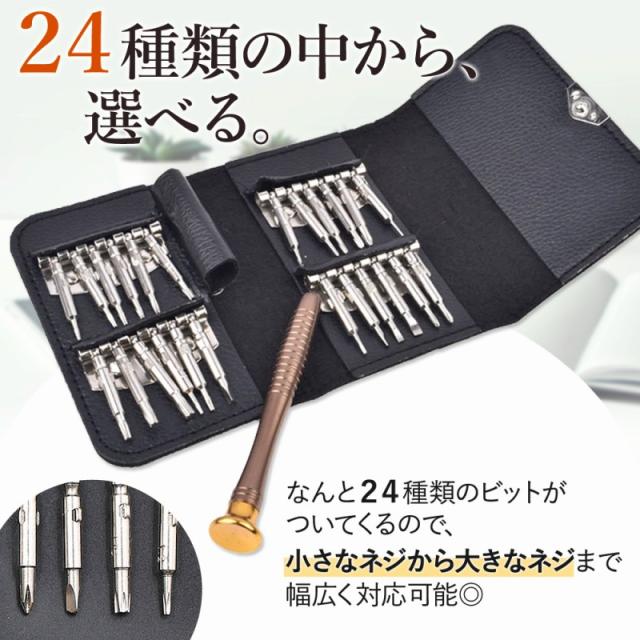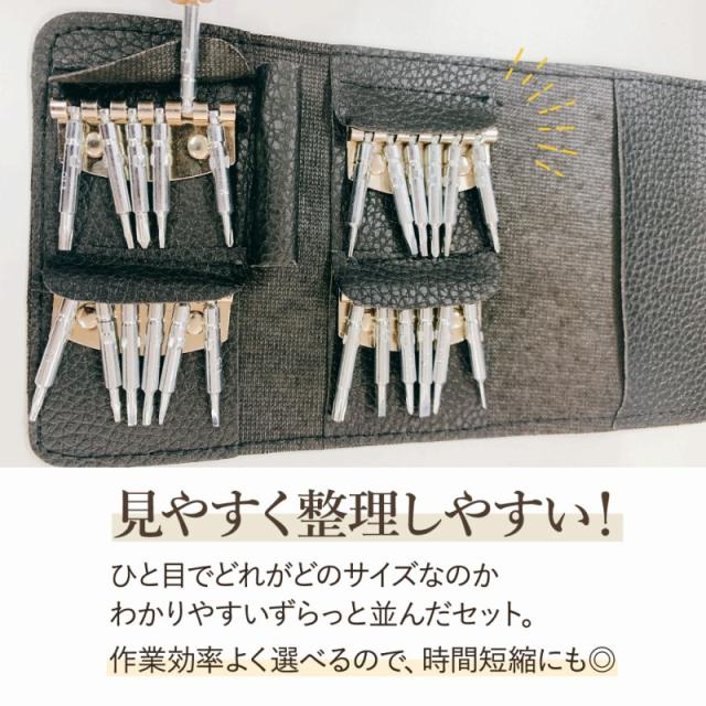 | 商品の説明 | 仕事や旅行で、急にPCやメガネが故障した際も大丈夫。 カバンにすっぽり入るコンパクトサイズだから、 いつだって万全の準備ができます◎ プロも愛用するセットは、使いやすいからこそ初心者でも直感的に簡単に使えます。 なんと24種類のビットがついてくるので、 小さなネジから大きなネジまで幅広く対応可能。 ひと目でどれがどのサイズなのか、わかりやすいずらっと並んだセット。 作業効率よく選べるので、時間短縮にも◎ ビットを上方向に持ち上げて、引っ張ることで取り出せます。 ドライバーの先端部分へ取り付けて完成! 安定感があって握りやすいグリップと使いやすい丈夫なビット。 手元がブレにくく、しっかり使えます◎。 リモコンやメガネ、スマホやゲーム機などかゆいところに手が届く 人気のドライバーセット! |