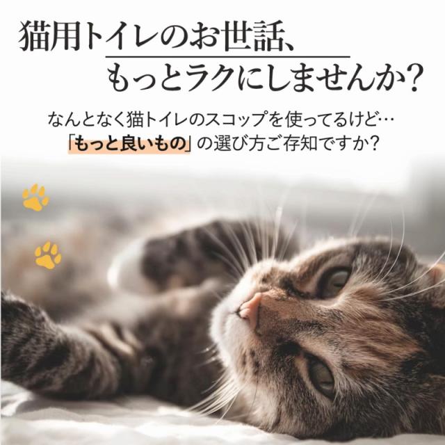 | 商品の説明 | なんとなく猫トイレのスコップを使ってるけど… 「もっと良いもの」の選び方ご存知ですか? 飼い主さんのお声をもとにつくられた みんなが欲しかった猫砂スコップが登場! 毎日のお世話をもっと便利に、清潔に保てるうれしいスコップが登場。 小粒の猫砂から、大きめの猫砂まで。 幅広く使えるのが人気の嬉しいポイントです! 幅広スコップがまとめて使えるので、うっかり手で触ることもなくなって衛生的。 お世話の時間短縮にも繋がります◎ うさぎやハムスター、リス…。 幅広いペットのお世話にも大活躍! 使い終わったら、さっと水洗い可能。 いつだって清潔を保てて、地面に触れないよう壁掛けもできます。 軽くて使いやすいので、小さなお子様でも安心してお使いいただけます。 ちょうどいいサイズ感は、握りやすくすくいやすいので長く使える丈夫な耐久性。 プレゼントにもおすすめな、今大人気のペット用品です。 |