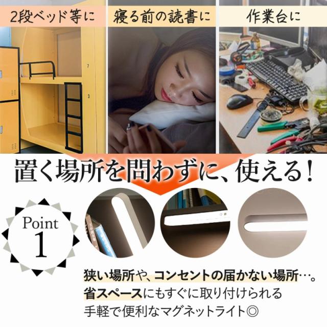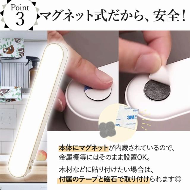 | 商品の説明 | 狭い場所や、コンセントの届かない場所…。 省スペースにもすぐに取り付けられる手軽で便利なマグネットライト。 マグネットでピタッと吸着できるので、ほしいところにすぐ設置。 コンセントが届かない場所だって明るく照らしてくれます。 時間が選べる、タイマー機能付! わざわざ身を起こして電気を消して…としなくても、ボタンひとつでOK。 本体にマグネットが内蔵されているので、金属棚等にはそのまま設置OK。 木材などに貼り付けたい場合は、付属のテープと磁石で取り付けられます◎ 3種類の調色、細やかな光の強度が変更できる快適仕様。 自分にあった、明るさが選べます。 便利なUSB充電可能なので、モバイルバッテリーはもちろん、PCやアダプタから充電できるので屋外でも大活躍! 高品質のパネルとフィルターを組み合わせて、LEDの光を効率的にムラなく高めて照らせます。 省エネルギーで、長く使えるのが特徴! |
