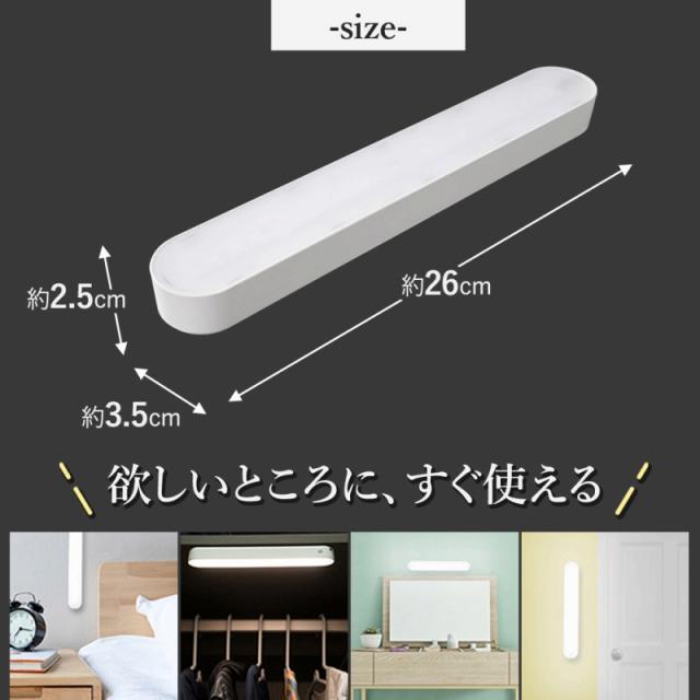 | 主な仕様 | 【サイズ】 約3.5×26cm 【セット内容】 ・ライト本体 ・リモコン ・USB充電ケーブル ・磁石 ・テープ 【仕様】 便利な日本語説明書付き 【電池】 CR2025ボタン電池1個をご準備ください。 |