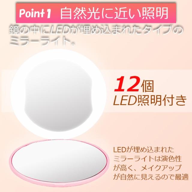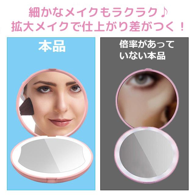 ライト付きミラー 女優ミラー LED 鏡 折り畳み鏡 LED照明 拡大鏡 コンパクトミラー 卓上ミラー 化粧鏡 手鏡 折りたたみ 明るさ かわいい おしゃれ 人気 agesugi_sbe