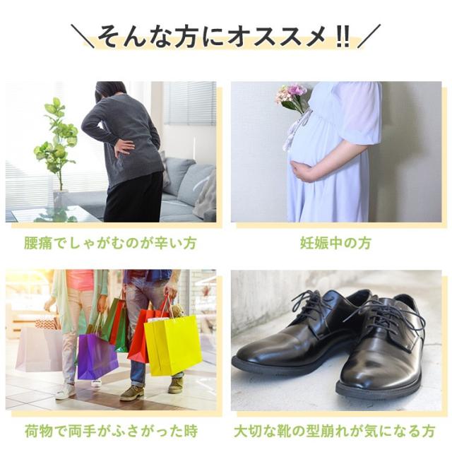 腰痛でかがむのがつらい方、妊娠中の方、荷物で手がふさがった時にも、サッと靴が履けてすぐにお出掛けが出来ます。