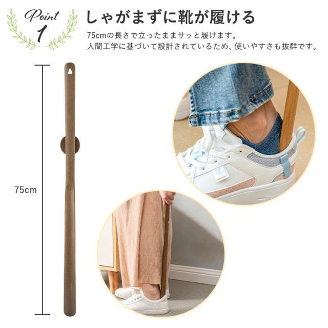 75cmのロングタイプでかがまずに靴が履ける便利な靴ベラです。
