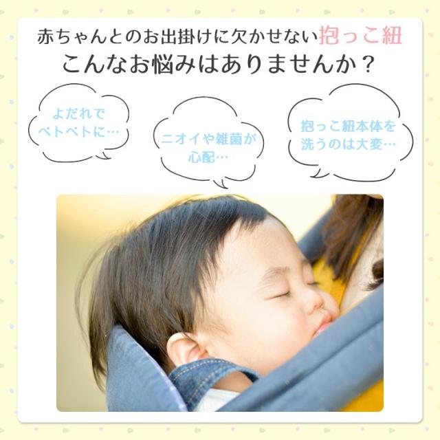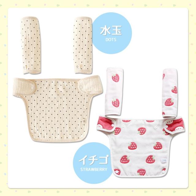 | 主な仕様 | 素材:綿100% バリエーション:星1、星2、クマ、ウサギ、ハート、水玉、イチゴ セット内容:抱っこ紐カバー×2、胸当てパッド×1 |