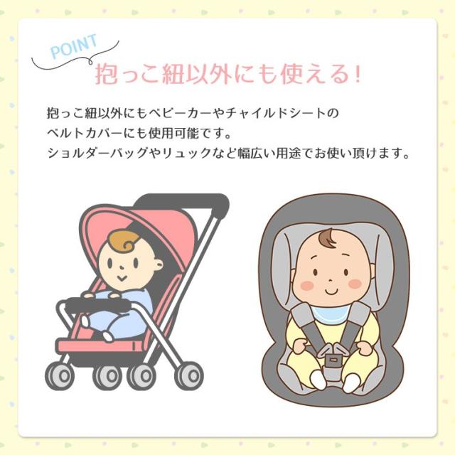 抱っこ紐の他、ベビーカーやチャイルドシートのベルトのカバーに、