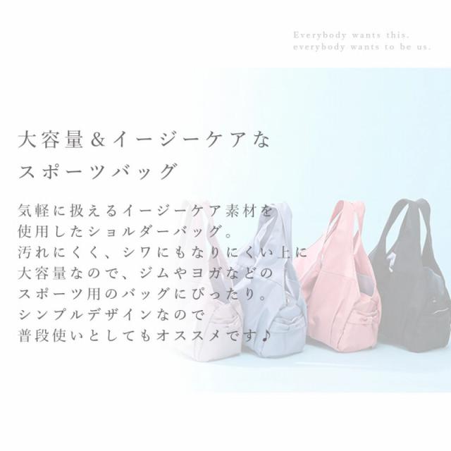 | 商品の説明 | 気軽に扱えるイージーケア素材を使用したショルダーバッグ。 汚れにくく、シワにもなりにくい上に 大容量なので、ジムやヨガなどの スポーツ用のバッグにぴったり。 シンプルデザインなので 普段使いとしてもオススメ♪ キレイめトーンのカラー展開なので 大人の女性にもぴったり。 オフィスにも馴染む色合いなので 通勤用兼ジム用バッグとしてお使い頂くのもオススメ♪ 頑丈かつ、撥水性のある素材を使用。 月に1度程度の頻度でウェットティッシュや 濡れタオルなどでお手入れして頂くと より綺麗に長くご使用頂けます。 ※素材の特性上、高温な場所、アイロンがけはお控えください。 大容量なのはもちろんのこと、 4コーナーの小分け+インナージップ収納で きちんと整理整頓できる♪ 全面撥水性がある素材なので使った後のタオルや結露した ドリンクなども気軽に収納して頂けます♪ 重みを分散させる肩が痛くなりにくい設計。 ショルダーバッグとしても、ハンドルバッグとしてもご使用頂けます。 プールバッグ ビーチバッグ 温泉 旅行 レジャー |