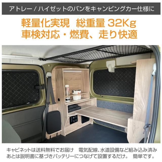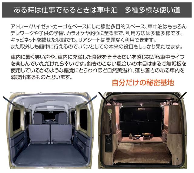 【受注生産品】キャンピングキット | 直流家 S700系アトレー(ハイゼットカーゴ)用クルージングキャビネット JPN-CC700V | 送料無料 ダイハツ DAIHATSU ATRAI HIJET 車中泊 軽キャンパー キャンプ テーブル 棚 ベッド クルキャビ